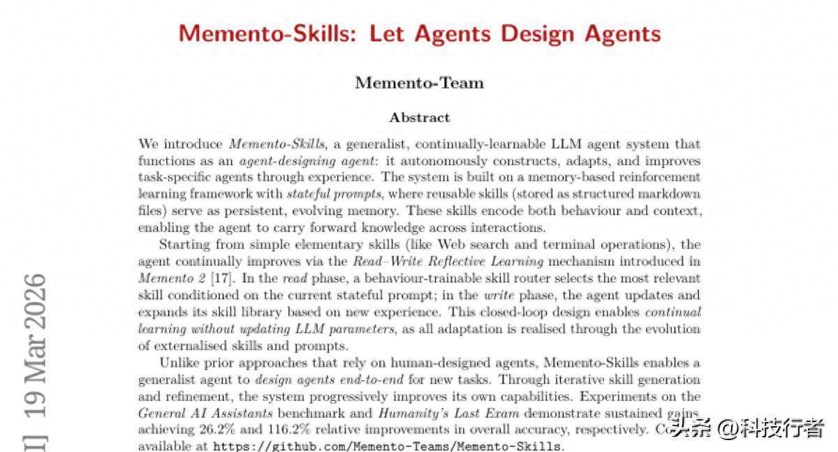 来自伦敦大学学院(University College London)的研究团队在2026年3月发表了一项突破性研究,该研究于arXiv平台发布,编号为arXiv:2603.18743v1,专门探讨如何让AI智能体像人类学徒一样,通过实际经验自主学习和积累技能。这项名为"Memento-Skills"的研究为我们展示了一个全新的AI学习范式:不再需要重新训练大型语言模型,而是让AI通过外部技能库不断进化。